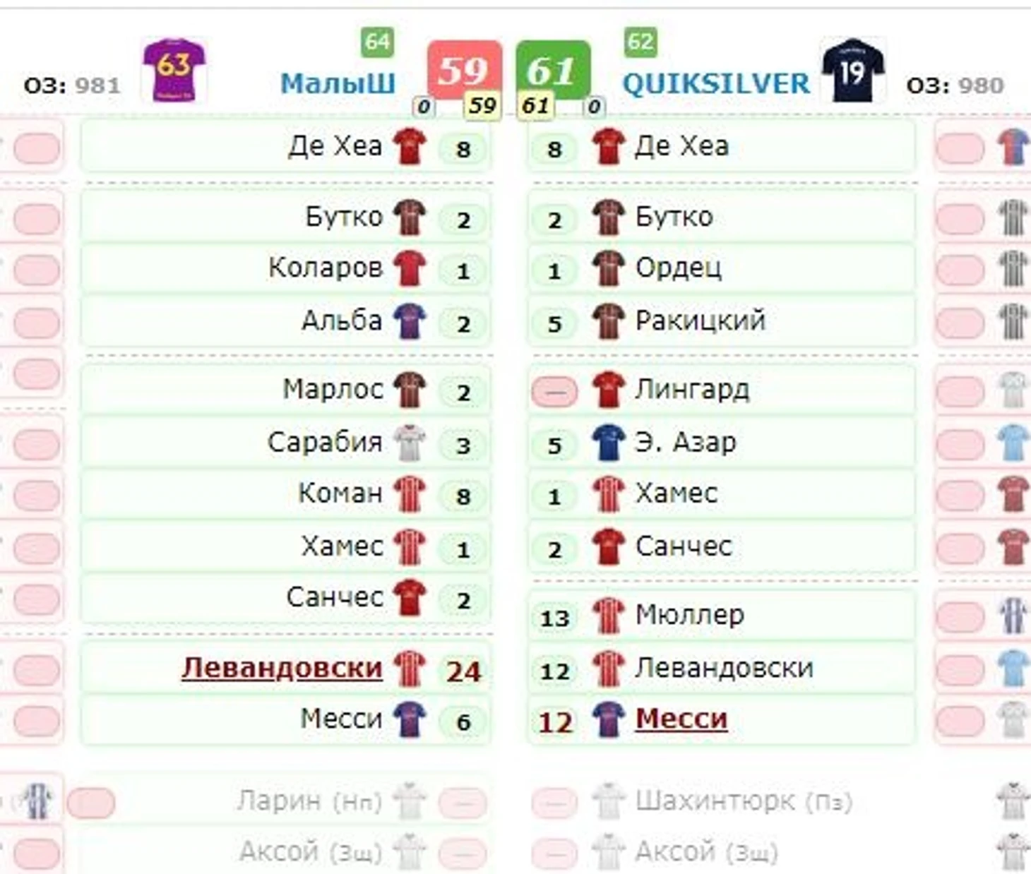 В эту рубрику в очередной раз попадает матч с участием QUIKSILVER и в очередной раз Ртуть на ниточке обыгрывает сильного соперника. Труп, неудачный выбор капитана и сорванный сухарь Шахтера предвещал беду Квиксильверу, но благо Мюллер феернул и спас ситуацию. У МалыШа можно выделить Комана, который был не самым популярным пиком на этот тур, но принес ценные очки.