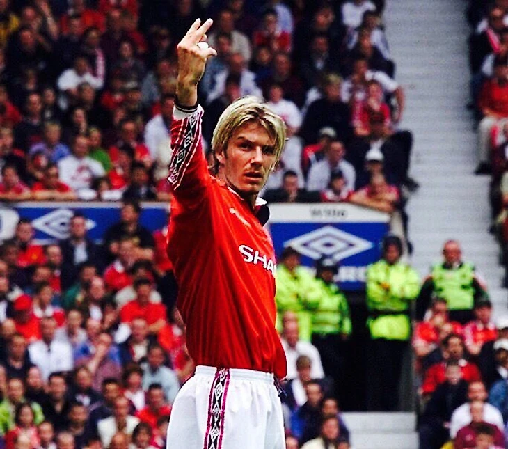 Дэвид Бекхэм посылает "привет" фанатами «Лидса», 1998.