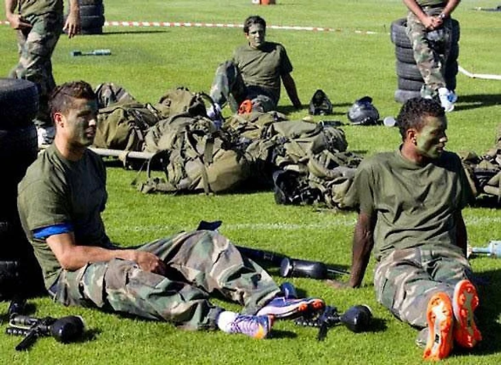 Криштиану и Нани на тренировках военно воздушных сил Португалии, 2010.