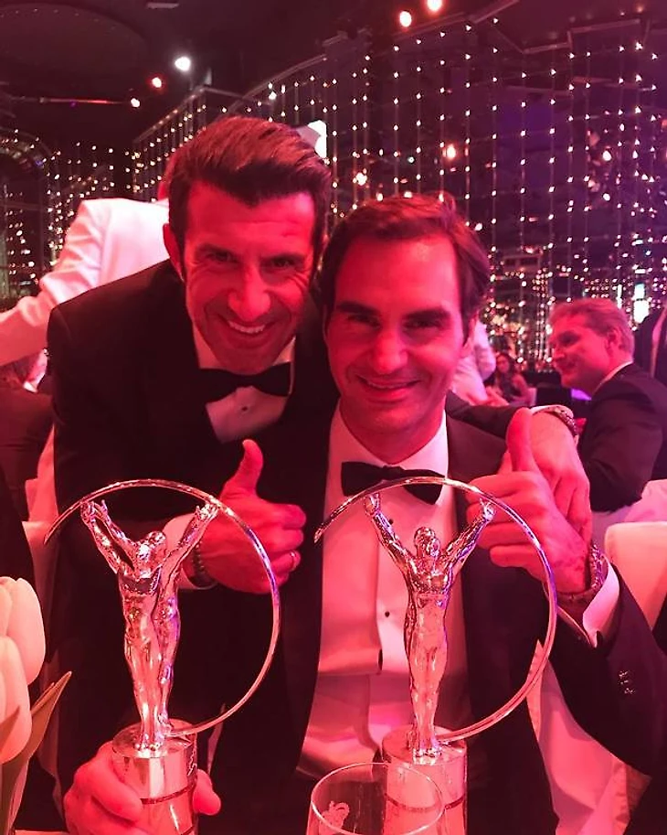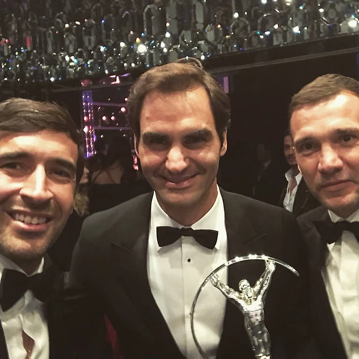 Рауль и Шева с победителем в номинации "Спортсмен года" по версии Laureus18 - Роджерем Федерером
