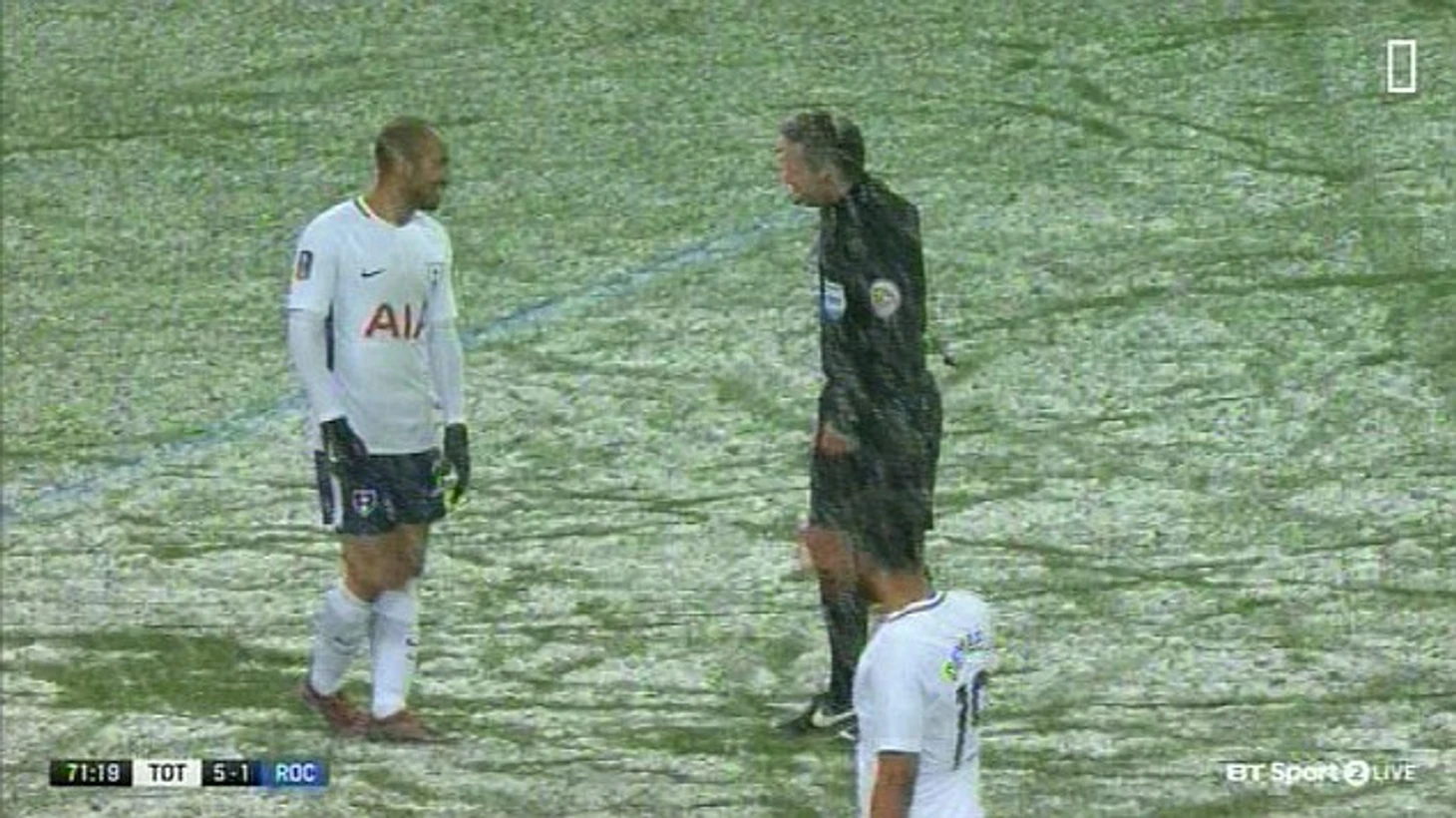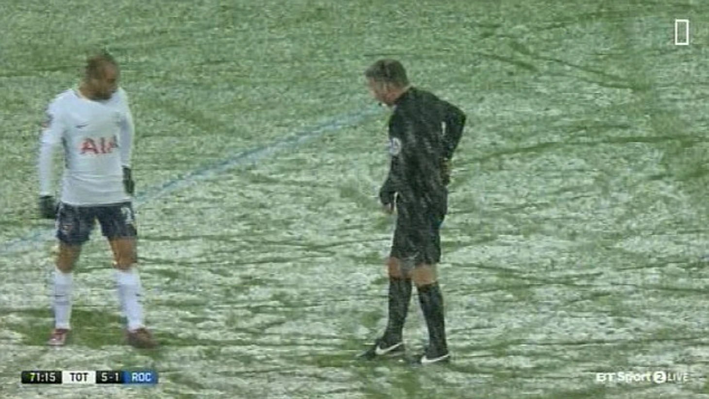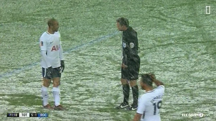 Судья хотел использовать исчезающий спрей на снегу, но быстро все понял