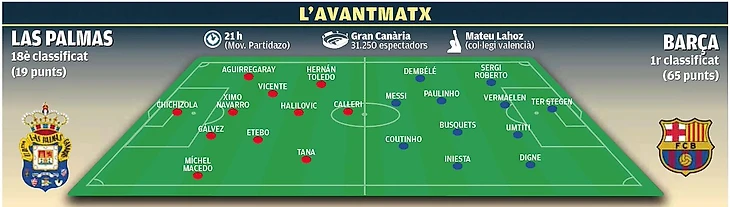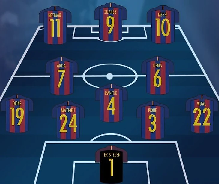 В одном из предматчевых превью я наткнулся на предполагаемый вариант стартового состава, где вместо Видаля присутствует Дембеле, а вместо висящего под угрозой дисквалификации Суареса, Филиппе Коутиньо. И если честно, он мне показался наиболее оптимальным и логичным на тот момент.