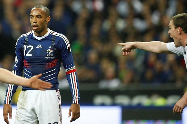 В печально известном поединке отбора на ЧМ-2010 между Францией и Ирландией нападающий в дополнительное время подыграл себе рукой, после чего сделал голевую передачу на Вильяма Галласа. Решающий мяч, забитый защитником "трехцветных" отправил Францию на мундиаль в ЮАР и несмотря на то, что нарушение было очевидным, Анри не признался арбитру в содеянном. Это уже после игры форвард не стал отрицать своей вины, а спустя некоторое время даже присоединился к просьбе Ирландской Федерации футбола переиграть матч. Однако это уже было слишком поздно и само собой ни к чему не привело.