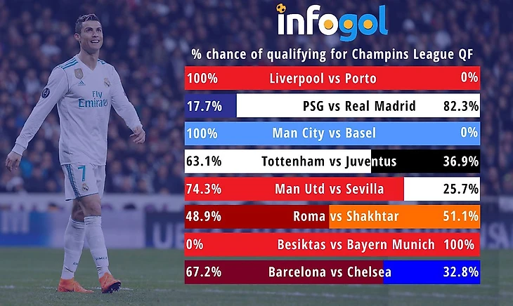 • Шансы на выход в 1/4 ЛЧ от Infogol