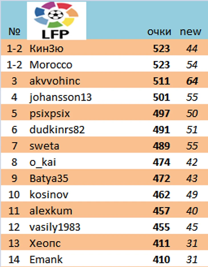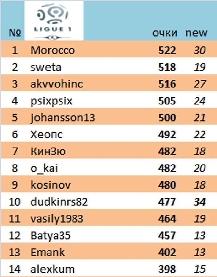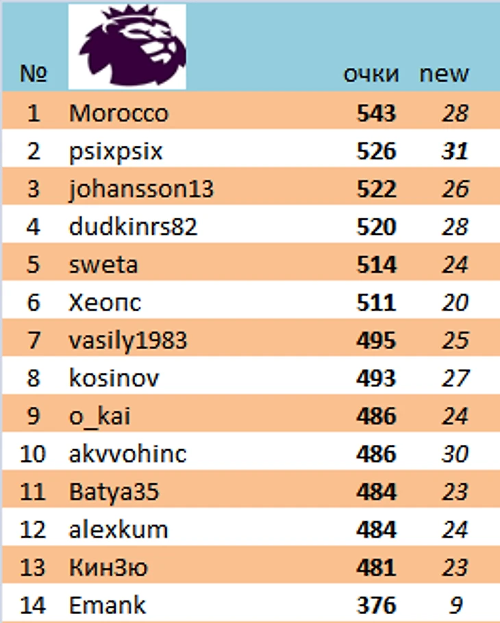 Лучшими игроками недели стали Morocco, dudkinrs82 (по 141 очку)