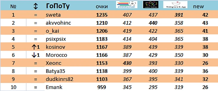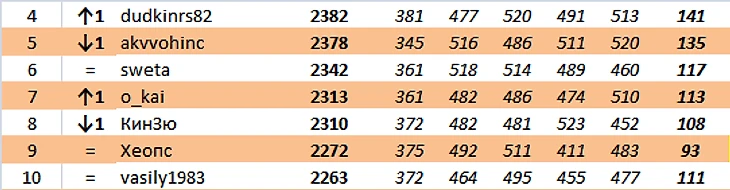 Прорыв недели : dudkinrs82, o_kai +1 место