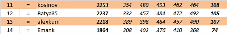 Во Франции в яблочко выстрелил dudkinrs82 (34 очка)
