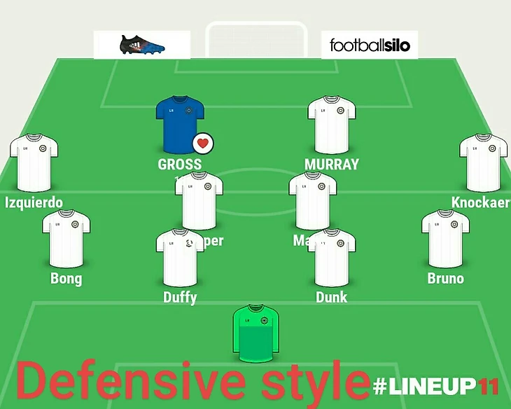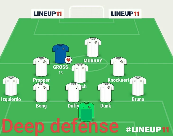 Расстановка "Defesive style" используется на ранних стадиях атак соперника, когда нужно закрывать зоны, но не давать чужим защитникам раслабляться. К "Deep defense" "Брайтон" обращается при затяжных позиционных атаках соперника с большим количеством владения на половине поля "чаек". Конечно, если соперник потеряет идею для развития атаки и начнет играть в "пас ради паса", то подопечные Криса Хьютона мигом перестроятся в "Hard pressing", чтобы суметь создать контратаку.