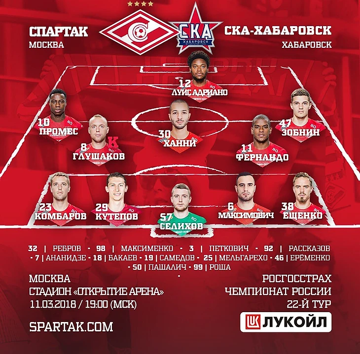 Состав «Спартака» в матче со «СКА-Хабаровск»