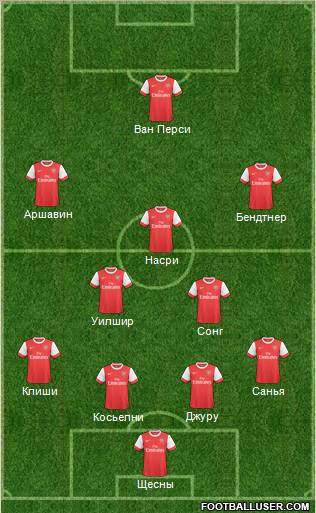 "Арсенал": Щесны - Санья, Джуру, Косьелни, Клиши - Сонг, Уилшир, Насри - Бендтнер, Ван Перси, Аршавин.