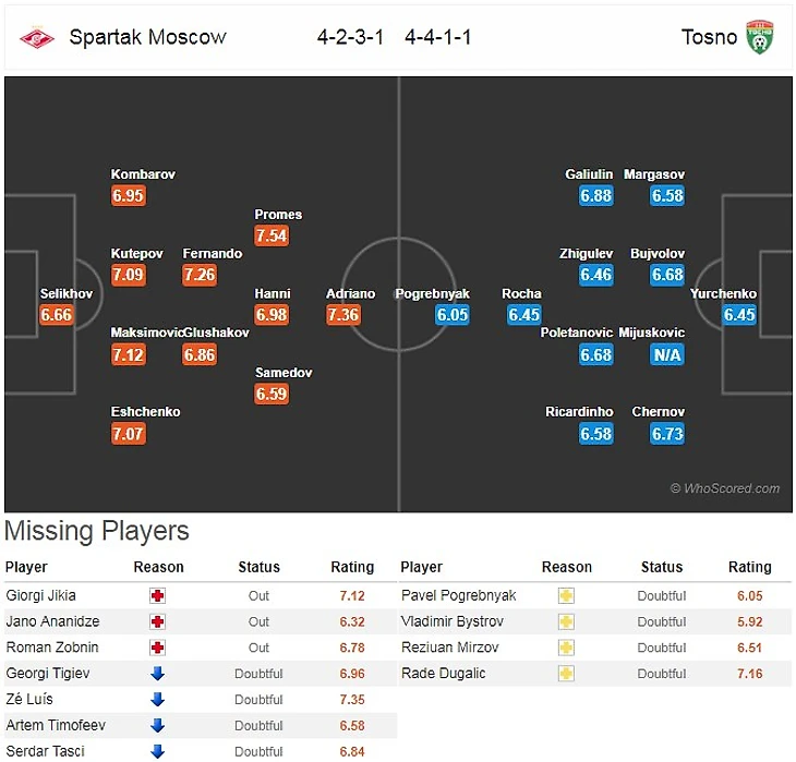 Потери: Ананидзе, Джикия, Тигиев (все - травм.), Зобнин, Таски,Тимофеев (все - под вопросом) -Мирзов(под вопросом)