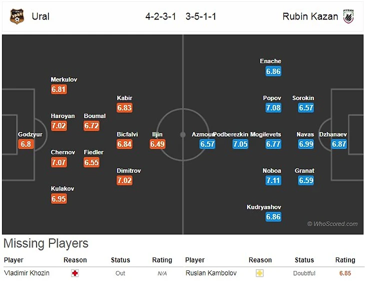 «Урал»: Годзюр - Кулаков, Чернов, Ароян, Меркулов - Бумаль,Фидлер - Димитров, Бикфалви, Эль-Кабир - Ильин.