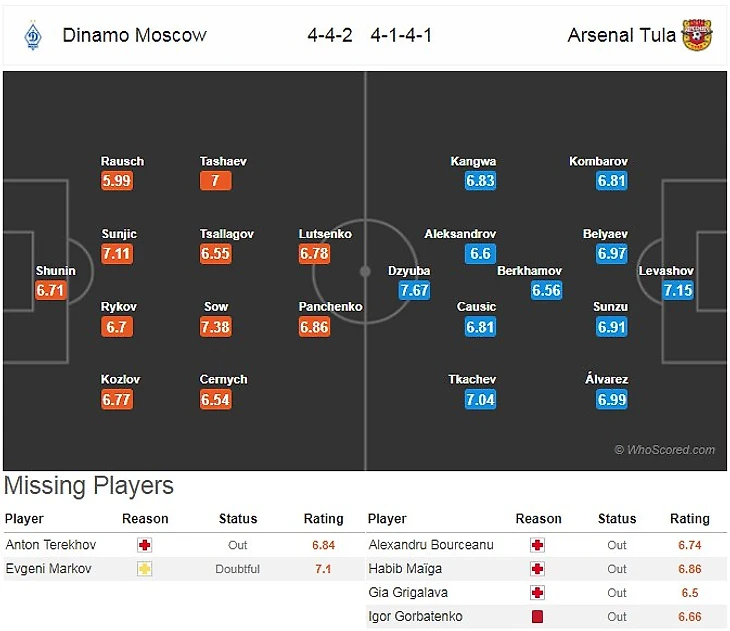 «Арсенал»: Левашов - К.Комбаров, Сунзу, Беляев, Альварес - Чаушич - Кангва, Александров, БЕРХАМОВ, Ткачев - Дзюба.