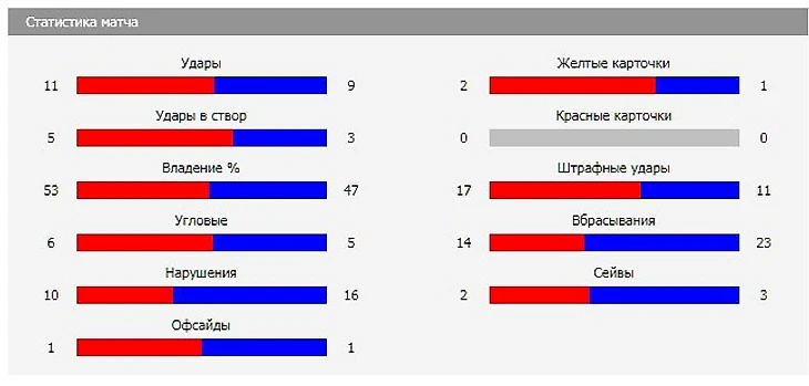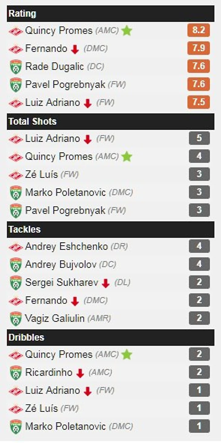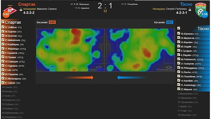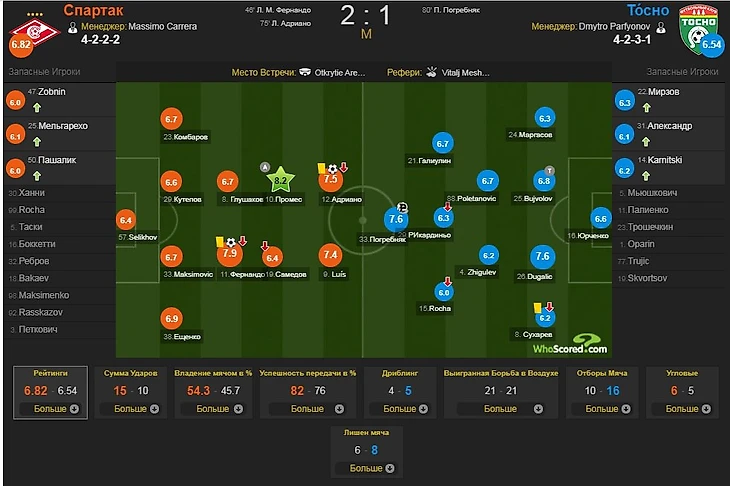 Статистический итог Российская Премьер-Лига Спартак - Тосно 2-1