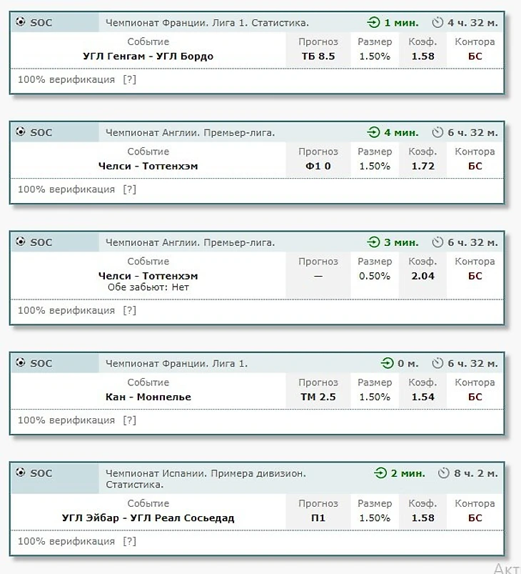 Ну, начинаем апрель! Дневная подборка. Матчей немного, но оно и к лучшему. Выбрал не самые высокие коэффициенты, но пусть лучше будет так. Хочется, чтобы апрель выдался более успешным, чем март. Хотя и март не сказать, что плох. Просто надо учиться умерять свой пыл, и не давать по 15 вариантов в день. Ну это так сказать мои рассуждения. А для вас вот, подборочка. Всем удачи в этот первоапрельский день!