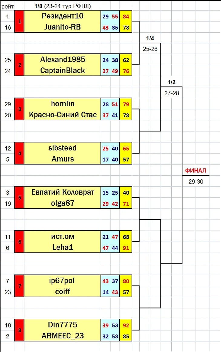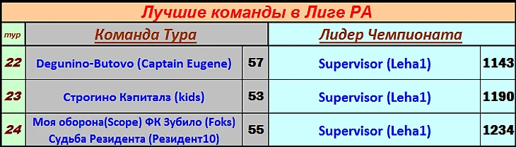 Привет Всем! До финиша остается 6 шагов... подводим итоги очередных туров ФФ-турниров в Лиге РА...