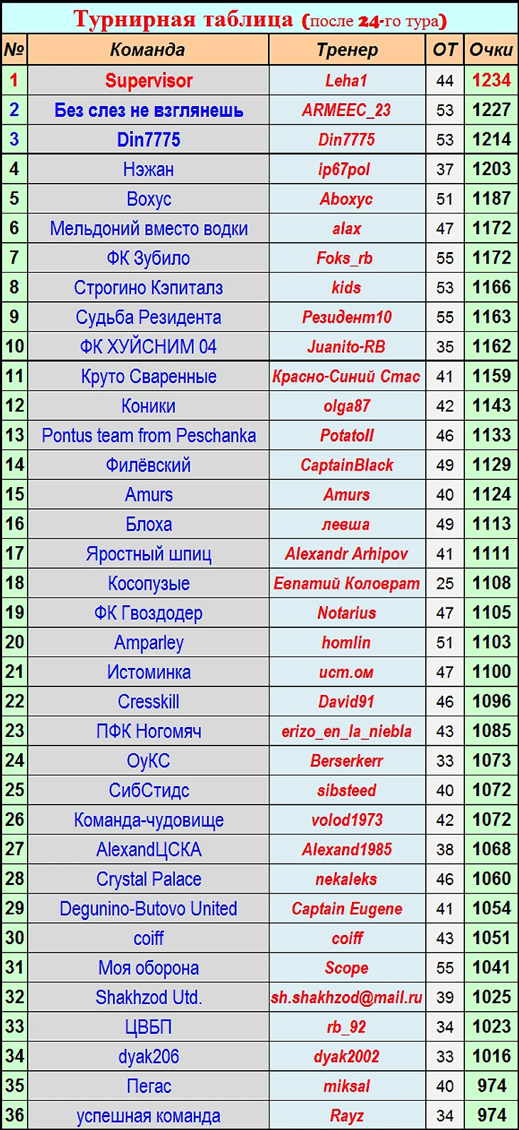 Турниры по fantasy. РФПЛ 2017-2018. Итоги туров №22 - №24