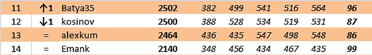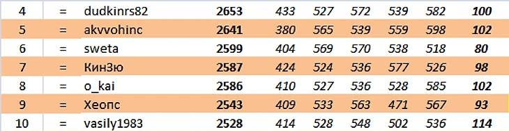 sweta продолжает лидировать! Было + 21 - стало + 25