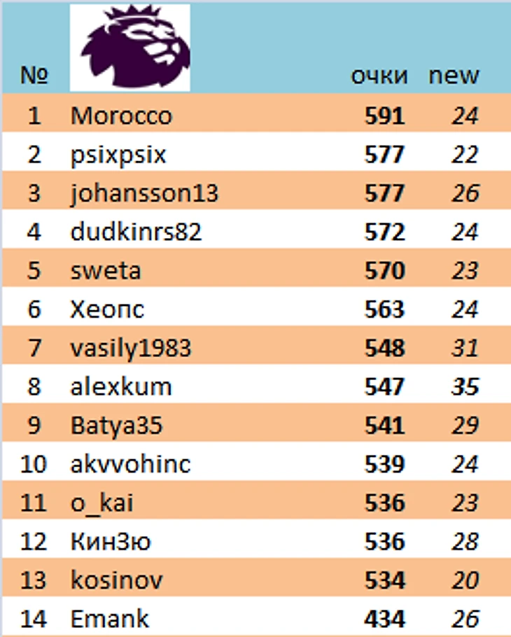 Лучшим игроком недели стал vasily1983 (114 очков)