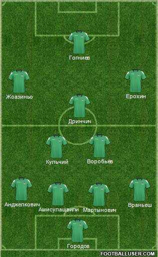 У краснодарцев совершенно ничего не ясно. Судя по предсезонным играм, вратарская и оборонительная линии будут выглядеть именно так, хотя и нельзя исключать появления, например Усминского или Тубича. А вот среди полузащитников и форвардов практически невозможно угадать реальные сочетания игроков и вообще саму схему. Из тех, кто не попал в состав, вполне возможно появятся на поле Юра Мовсисян, Дмитрий Мичков, Марсио или Андрей Михеев.