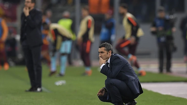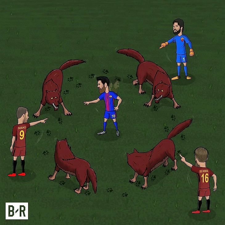 Если кто не в курсе, это была та самая Рома, к-я еле обыгрывала Карабах и дома прижималась к своим воротам против 10 игроков донецкого Шахтера, оберегая сокровенные 1:0 (Вальверде-стайл)... Та самая Рома, что у себя в Италии дай Бог в зону ЛЧ попадет и в любой момент способна проиграть любому колхозу Серии А... Вот та самая Рома вчера возила каталонцев рылом все 90 минут, не давая им поднять головы. Это выглядело намного позорнее и отвратительнее, чем 0:4 от Баварии. Там хоть соперник был мощный... Волков любой из полуфиналистов вынесет вперед ногами, попомните мое слово. И просто кем надо быть, чтобы просрать домашние 1:4 закоренелому неудачнику плей-офф ЛЧ, к-й привык там получать жесточайшие погромы от топ-клубов? Надо быть Вальверде: тренером без воли и характера, и как выяснилось, даже без элементарной логики.
