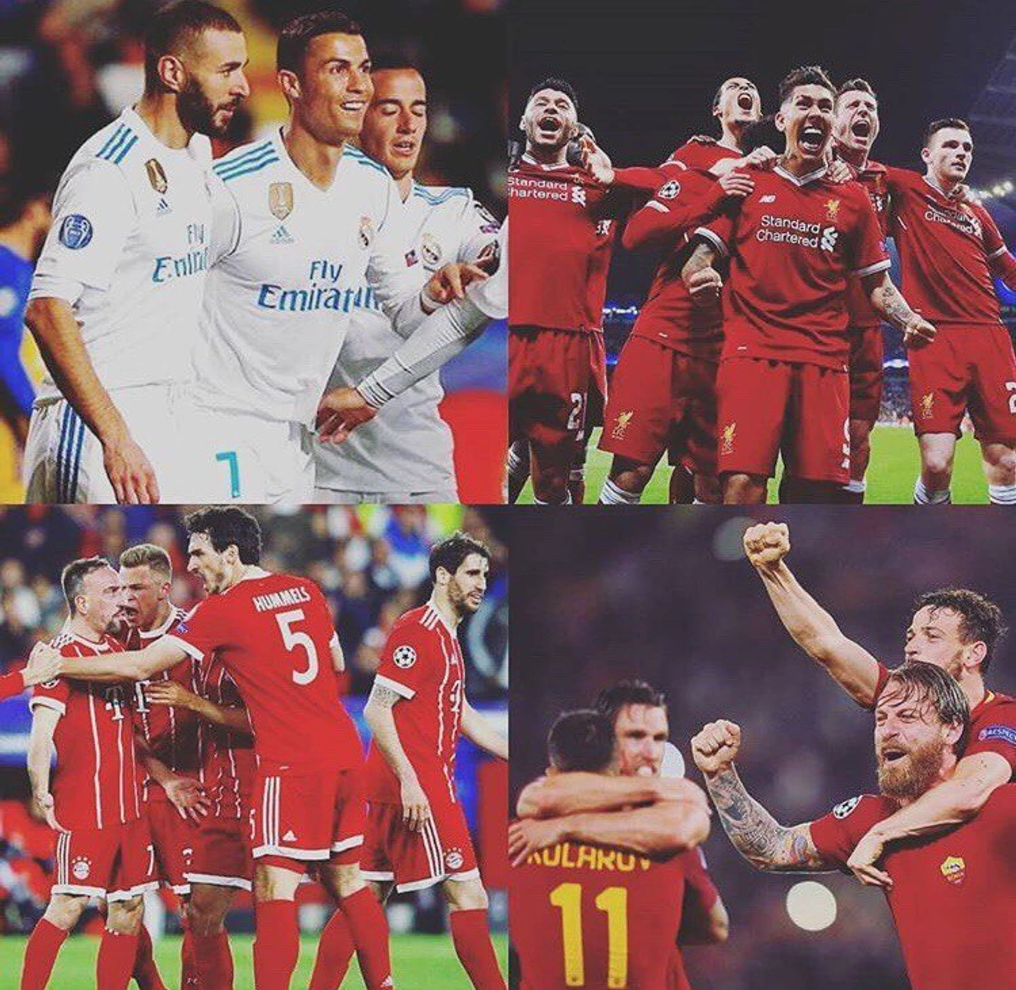 «Реал Мадрид» стремится переписать историю, выиграв свой 3 подряд титул, что доведет общее количество выигранных трофеев Лиги чемпионов до 13. «Бавария» всегда находится в числе главных фаворитов турнира и имеет внушительный опыт. «Ливерпуль» не раз вписывал свое имя в историю европейского футбола, однако на протяжении последних лет команда находилась в тени. Что же касается «Ромы», то «волки» не доходили до полуфинальной стадии уже более 30 лет.