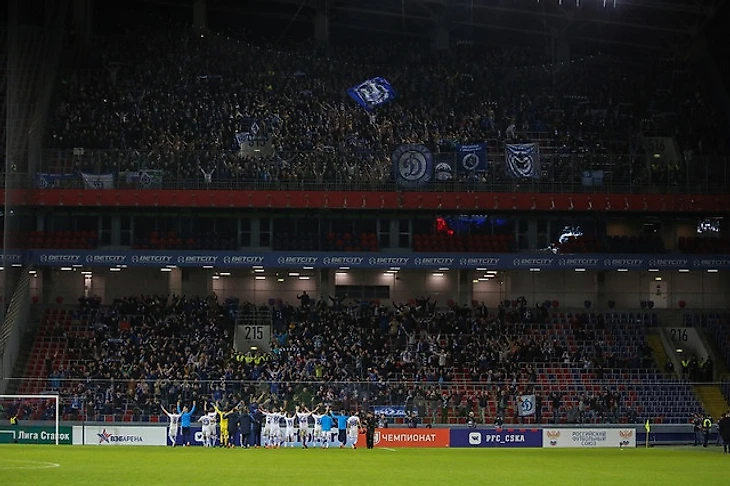 От новой динамовской арены до стадиона ЦСКА пешком 29 минут. Фаны Динамо гостевой сектор ЦСКА заполнить до отказа, как видим, не смогли.