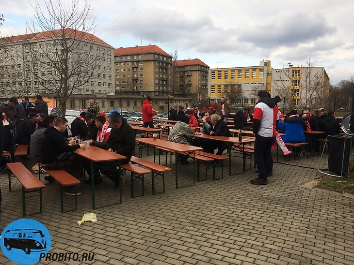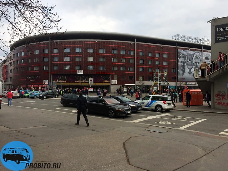Вообще, 1 апреля, можно было устроить капитальный чёс по стадионам Праги, но мы ударились по достопримечательностям, пробе пиваса с местной кулинарией (в принципе, отличный выбор сделали). К стадиону Eden Arena шли пешком от станции Flora с остановками в ресторанчике и пабе.