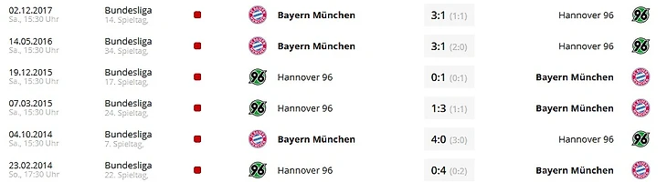 "Бавария" выиграла у "Ганновера" десять последних игр. Предыдущая победа "Ганновера" над мюнхенцами датирована 2011 годом