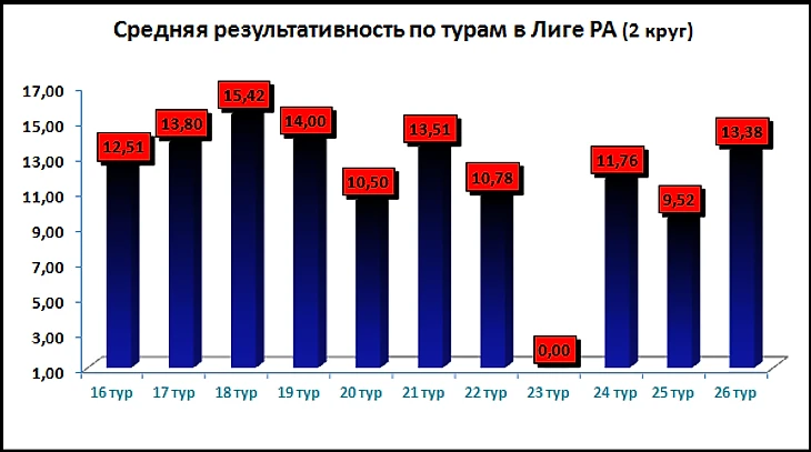 После 26-го тура в прошлых сезонах максимальный результат в Лиге РА был: