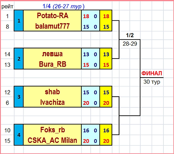 Привет Всем! Подводим итоги очередного тура КП-турниров в Лиге РА...