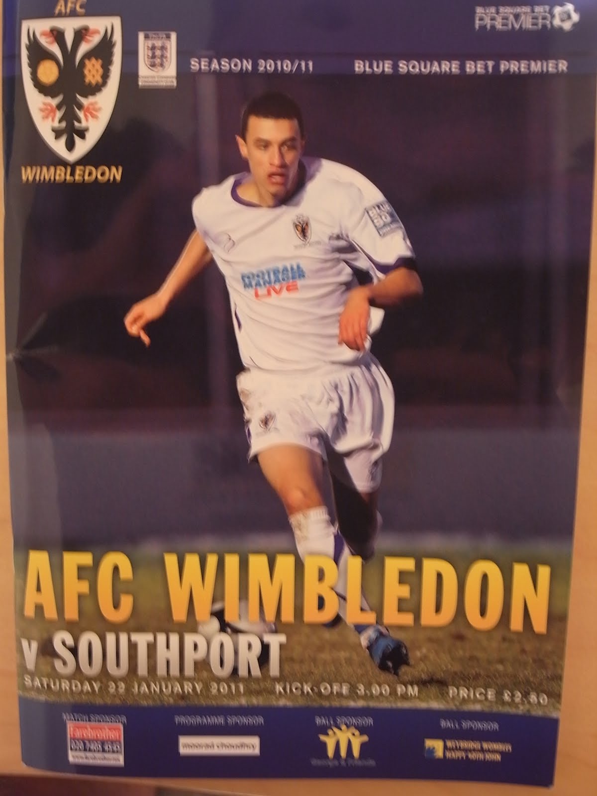 В результате этого в начале сезона 2010/11 я изучил календарь матчей Национальной Конференции и поставил на заметку один из матчей 22-го января 2011-го года - "Саутпорт" должен был приехать в Кингстон на матч с "АФК Уимблдон".