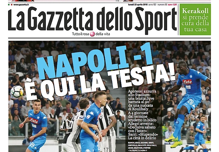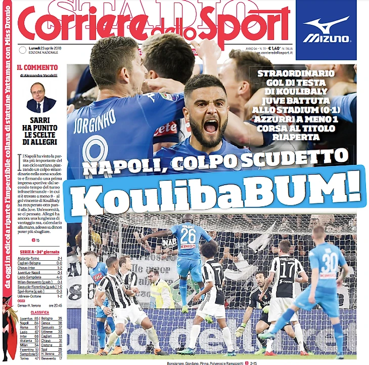 «Наполи выиграл самый важный матч при Сарри и сделал невозможное – в середине недели, по ходу матчей, адзурри отставали от Юве на 9 очков, а теперь между ними всего одно. Преимущество на стороне Аллегри, но Ювентус больше не может ошибаться, и в такое неудобное положение туринцев поставил Наполи.