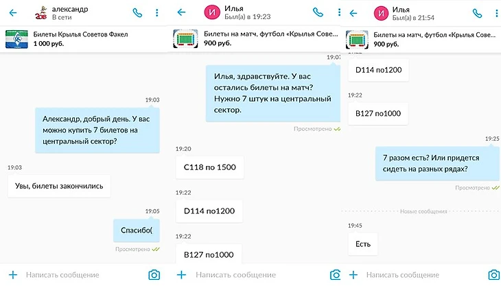 Я не знаю. Вполне вероятно, что большинство сообщений о массовой закупке билетов – вброс. Однако, с некоторыми из продавцов удалось связаться в приложении. Один из них сразу же написал, что билеты, увы, закончились, другой предложил сразу 3 сектора. Узнать, действительно ли все продают именно искомые билеты не представляется возможным, но на момент написания заметки из завершенных сделок всех трёх аккаунтов видно, что эти пользователи постоянно перепродают билеты на различные спортивные соревнования.