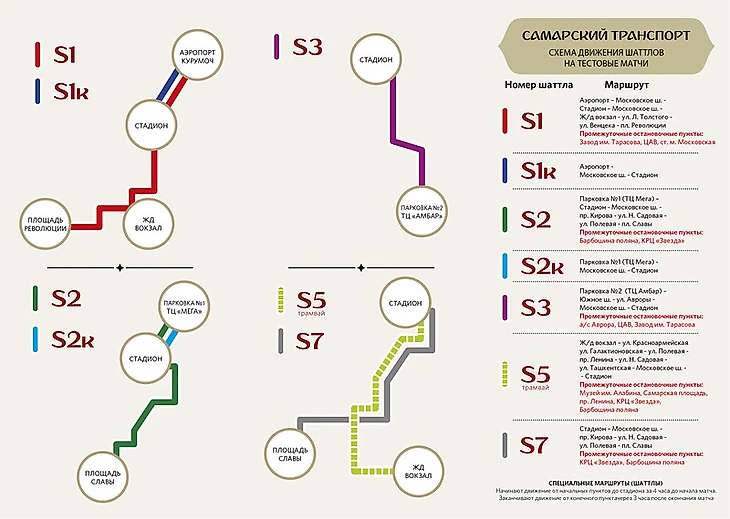 Чтобы доставлять болельщиков на стадион, в дни тестовых матчей и во время ЧМ будет работать скоростной трамвай — за 4 часа до и 3 часа после матча. В день матча «КС» - «Факел» трамваи будут ходить с 14:00 и до 23:00. Но главный прикол в том, что 13 других маршрутов в эти часы ходить не будут. Потому что мешают своей медлительностью скоростному трамваю, у которого только пять остановок за 16 км. пути.