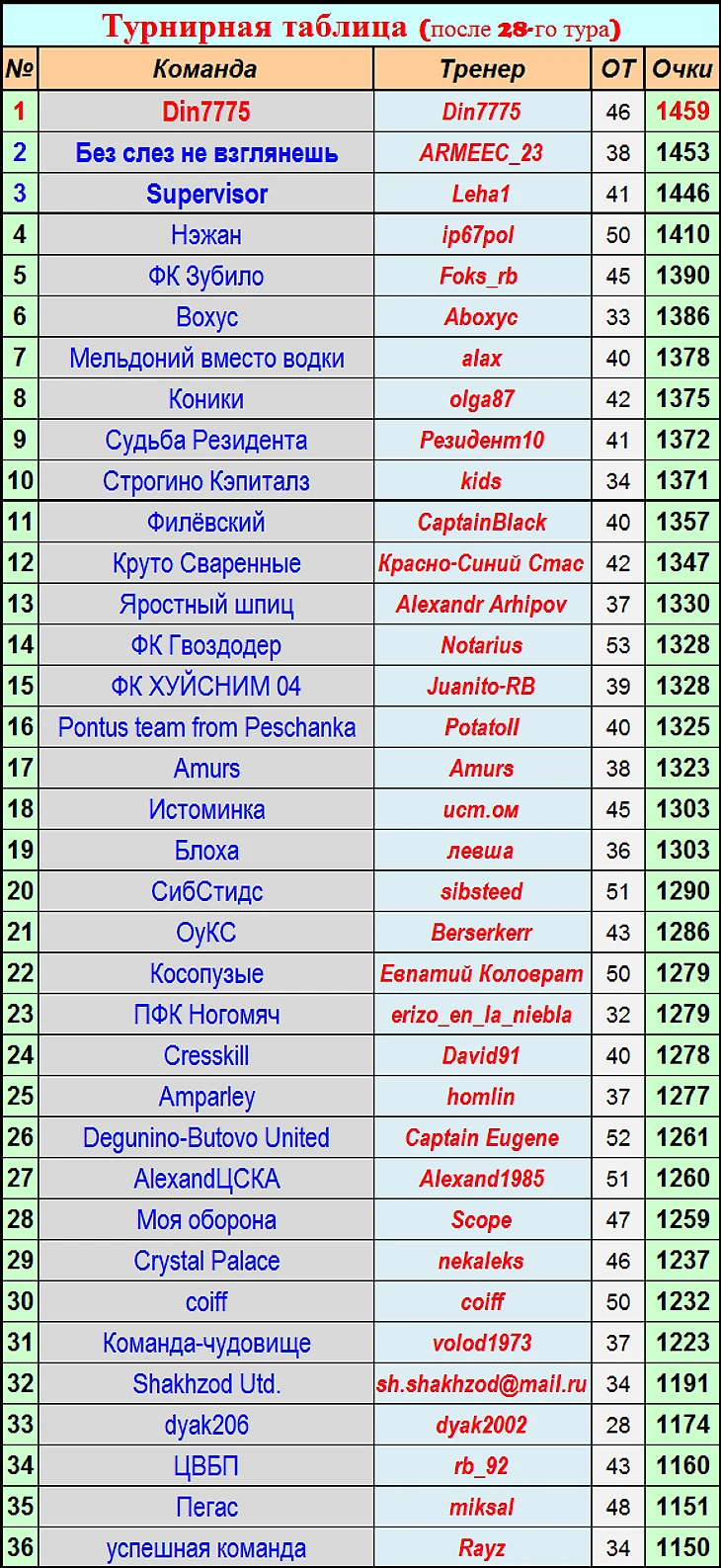 Турниры по fantasy. РФПЛ 2017-2018. Итоги туров №27, №28
