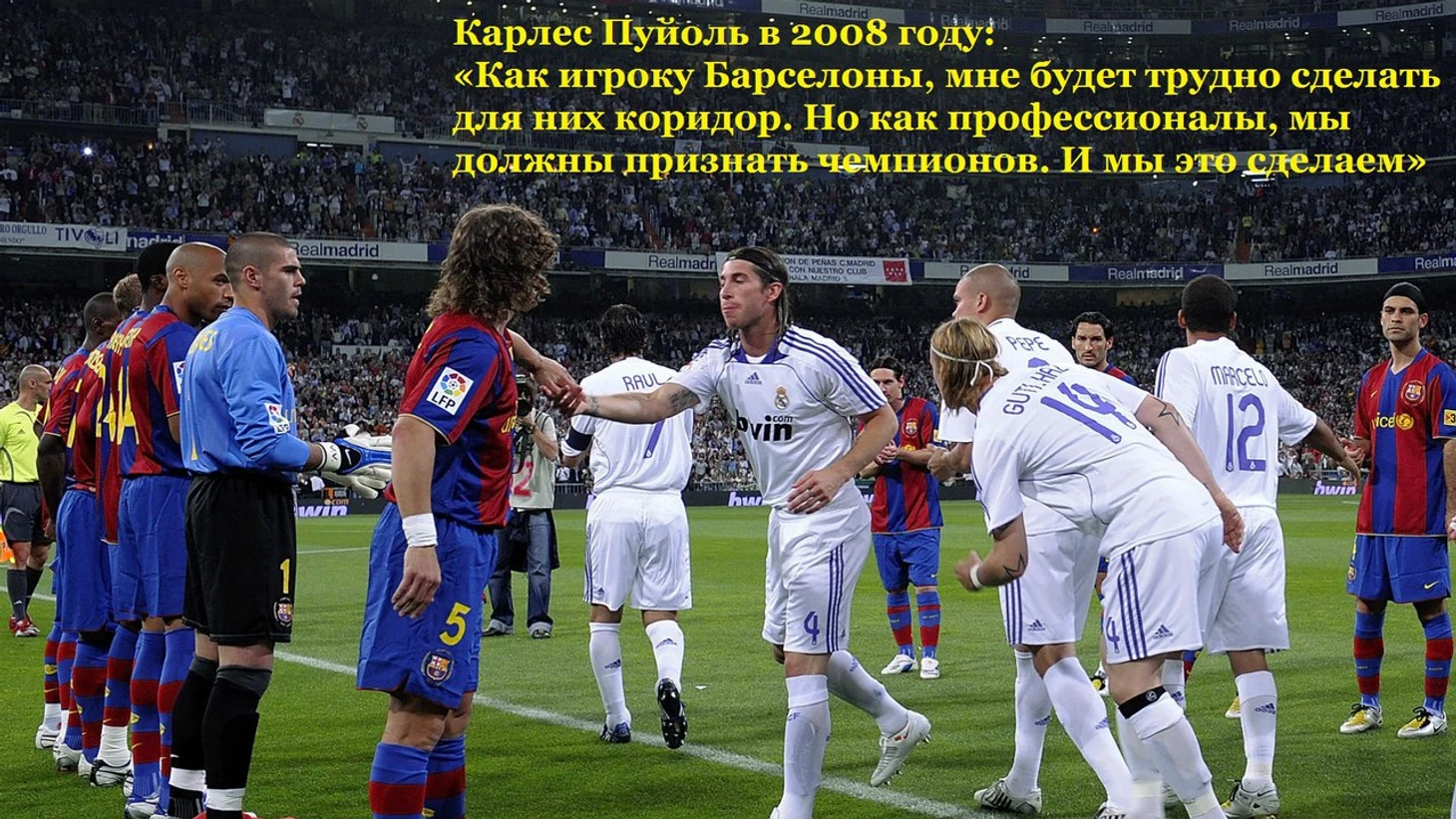 8 мая 2008 года в рамках 36-го тура Ла Лиги "Барселона", занимающая третью строчку в турнирной таблице приехала на "Сантьяго Бернабеу" на матч с "Реалом", который к тому моменту уже стал чемпионом Испании. И капитан "сине-гранатовых" Карлес Пуйоль сделал тогда следущее заявление:
