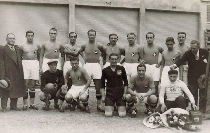 Бониццони ( третий слева в верхнем ряду) в составе сборной Италии-Б перед игрой с Люксембургом (12:0). Апрель 1932 года.