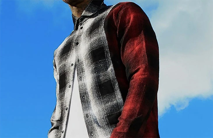 Так же выделяется рубашка, у которой один рукав красного цвета, а остальная часть черно-белая.