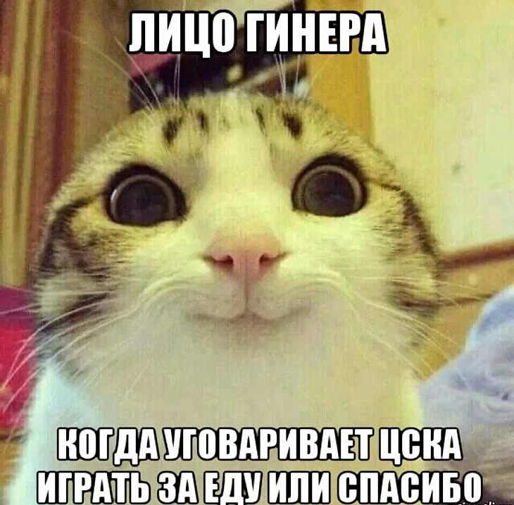 Итак, первый мемас про долгоиграющую и уже свербящую где угодно проблему цска с финансами, и именно их отсутствием. Дела идут не очень, соответственно денег нет, но вы держитесь там. Интересно, способно ли такое милое лицо уговорить Васина играть за Тирамису и Оладушки? Поживем, увидим.
