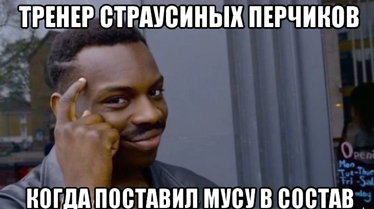 Следующий мем посвящен великолепному выбору тренера команды "Страусиные перчики" в выборе состава на вторую часть РФПЛ фентези турнира. Гениально решение выставить Мусу в состав, помогло Перцам обойти своих ближайших преследователей Кадыровцев и выйти на первое место в турнире Viva Barubin. В прочем, ничего нового, я красава, как обычно.
