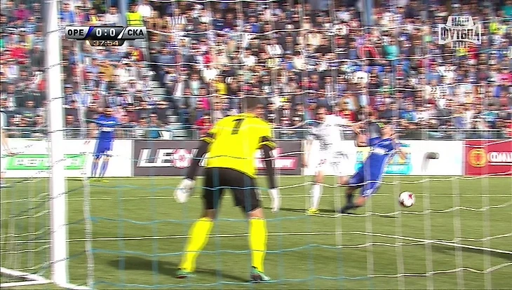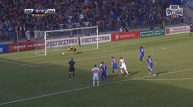 К 37-й минуте Довбня трижды успел спасти команду от гола. Армейцы за это время успели ответить выстрелом Коряна в перекладину. А на 38-й Казанков зацепил в своей штрафной игркоа «Оренбурга» Порнякова, и арбитр указал на точку.