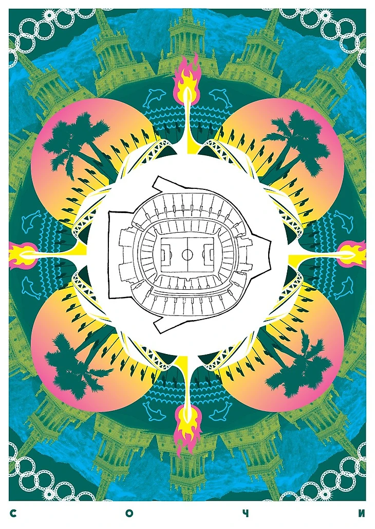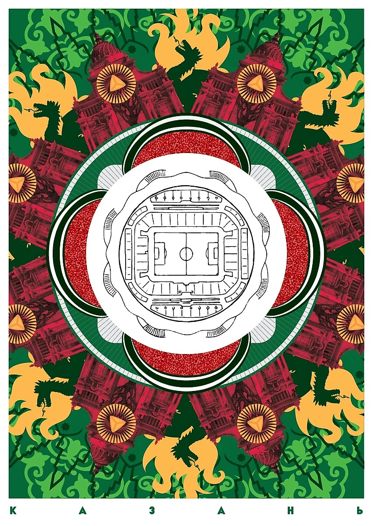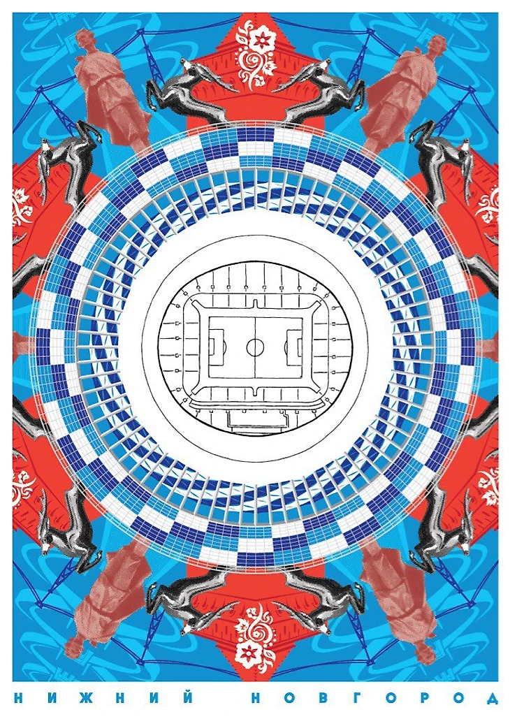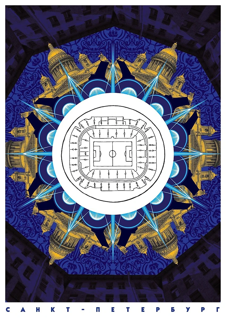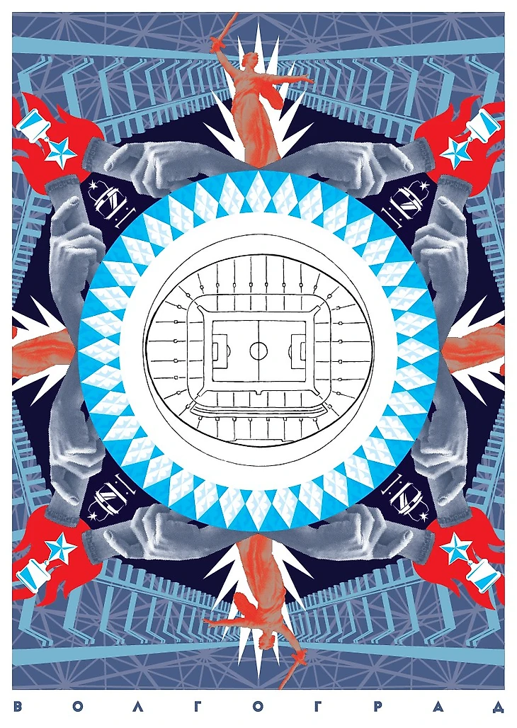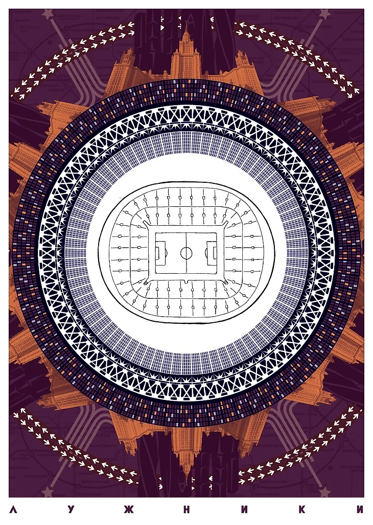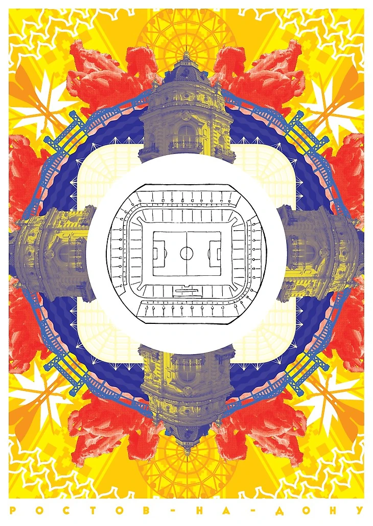 – Начал с арен и городов, принимающих чемпионат. Хотелось показать, как в городе бушует праздник, в центре которого футбольный стадион. Сами арены напоминают схемы и чертежи, ведь ЧМ-2018 – это большая стройка.