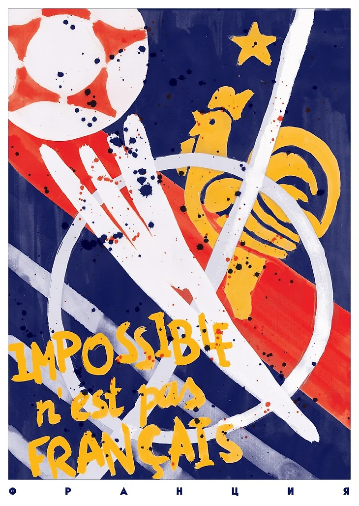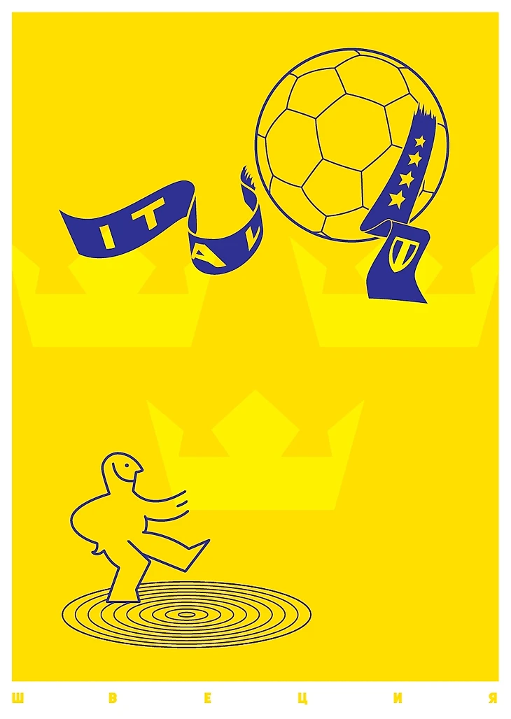 В постерах со сборными хотелось максимально отойти от шаблонов. Если в прошлых подобных проектах центром внимания становился звездный игрок, то теперь я подошёл к работе максимально абстрактно. Главная фишка: команды представлены через буквы русского алфавита.
