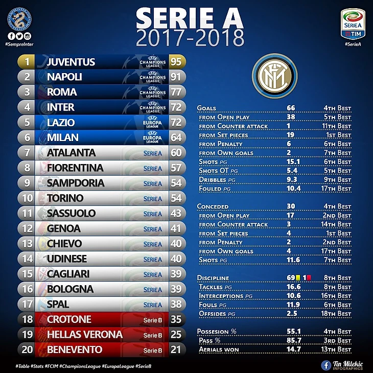 Статистические показатели «Интера» в Серии А сезона 2017/18