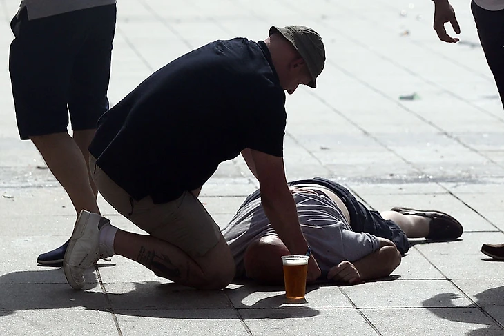 Как один из российских журналистов я также могу заявить, что в Марселе четверо из нас были зажаты у дверей гостиницы и попали под обстрел стеклянными бутылками, устроенный британцами. В Лилле корреспонденту Sports.ru англичане разбили телефон, а Иван Карпов из «Чемпионата», после попытки отнять растоптанный российский флаг, оказался в больнице. При этом когда наши сотрудники СМИ обратились в полицию, то вместо помощи получили…предупреждение от УЕФА.