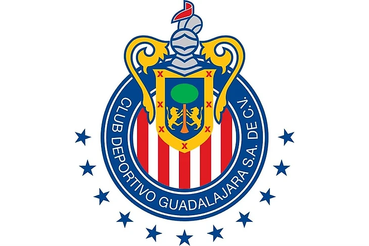 Эмблема клуба практически полностью копирует герб Гвадалахары, поэтому присутствие на ней нетипичного, в общем-то для Мексики рыцарского шлема, пожалованного городу королем Карлом V в 1539 году, никого не смущает. А вот основа из пяти красных и шести белых полос большинством воспринимается как ссылка на цвета формы, в которой выступает команда. Однако в данном случае имеет место путаница между причиной и следствием: красно-белые цвета попали на клубную эмблему из-за основателя команды Эдгара Эверарта, уроженца Брюгге. Красный с белым – цвета флага этого бельгийского города.