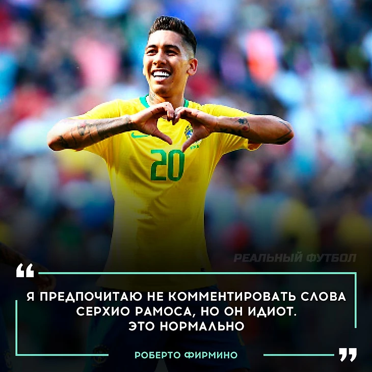 Которые являются наглой ложью. Просмотрев кучу новостных ресурсов, слова Фирмино звучали в такой вот форме «"Я предпочитаю не комментировать эту тему. Реал выиграл, и Рамос может говорить что угодно, однако думаю, это был не самый умный поступок с его стороны. Впрочем, все нормально.», «Я предпочитаю не говорить на эту тему. Я думаю, у него есть право говорить так, учитывая, что он чемпион и все такое. Мне кажется, он поступил глупо, но это в порядке вещей», «Я бы предпочел не комментировать это. Все в порядке, Рамос – чемпион.Но я думаю, что его слова идиотские. Но все окей» . Но нигде нет упоминания в словах Фирмино, что Рамос идиот. Разница между тем, что кто-то назвал ваши слова идиотскими и тем что вас назвали идиотом огромная, не находите ?