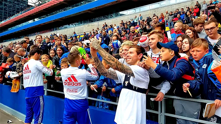 Популярнее всех для селфи, конечно же, был Смолов.
