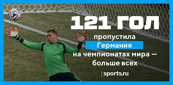Самая пропускающая нация. 121 гол забили немцам на чемпионатах мира. Не смейтесь над действующими обладателями титула: они также сыграли больше всех матчей (106) и забили – тоже больше всех (124).